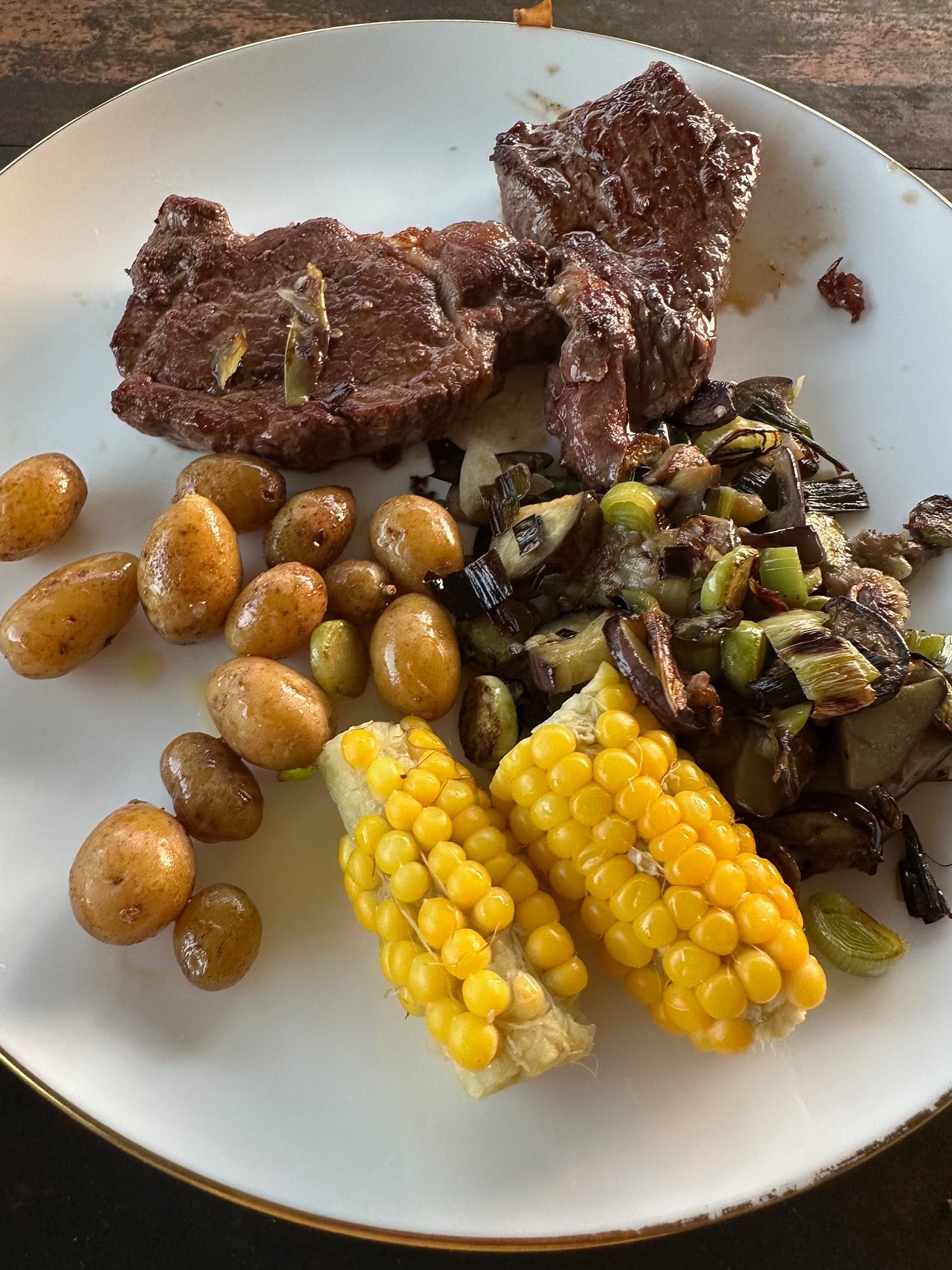 My garden is a mess as mentioned, but I still pick something to eat each day. I came home from Baralaba late in the afternoon, took some steak out, harvested some veg from the garden and cooked a completely home grown meal.
