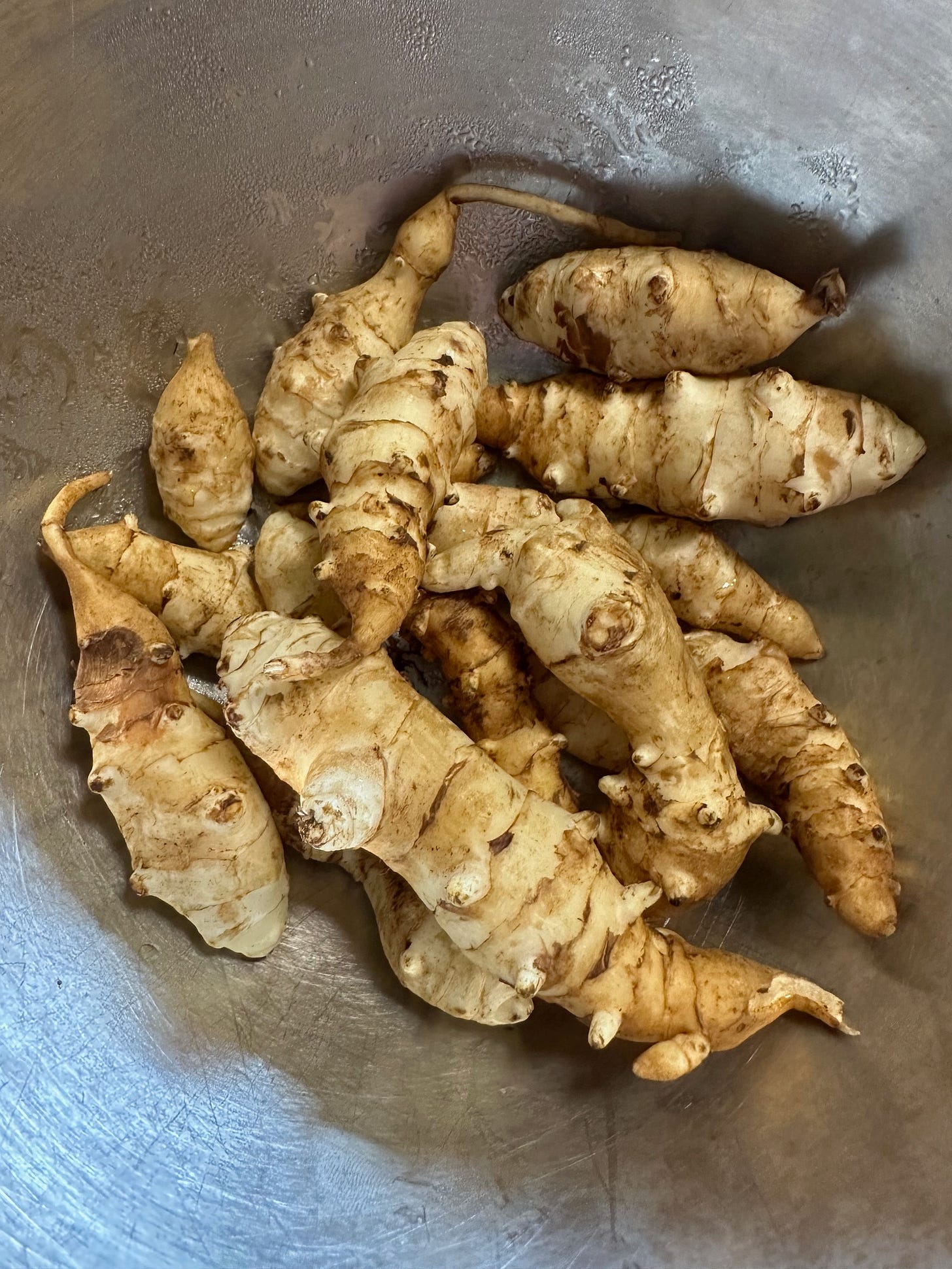 Quite some time ago, I planted out some Sunchokes (Jerusalem Artichokes). I thought I’d had a complete failure and then the other day I saw this pretty yellow flower and remembered planting them. The harvest was not the best!