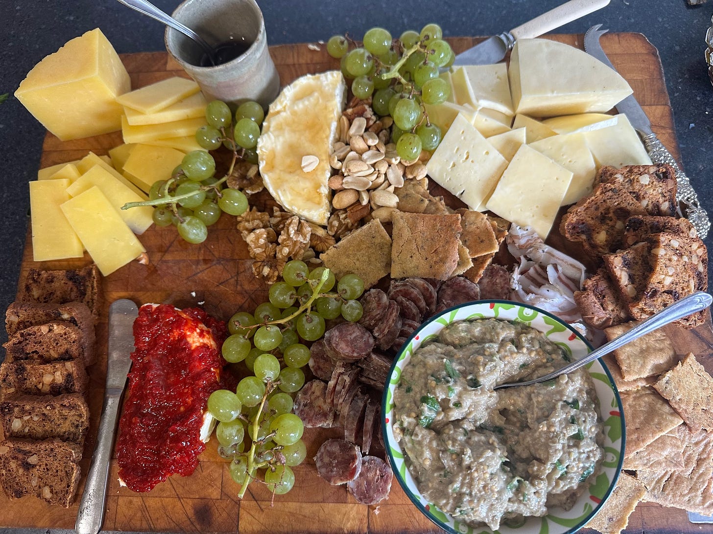 This is the grazing platter I started the festivities with. The grapes and the nuts were not homegrown or homemade.